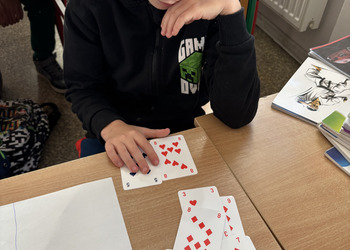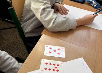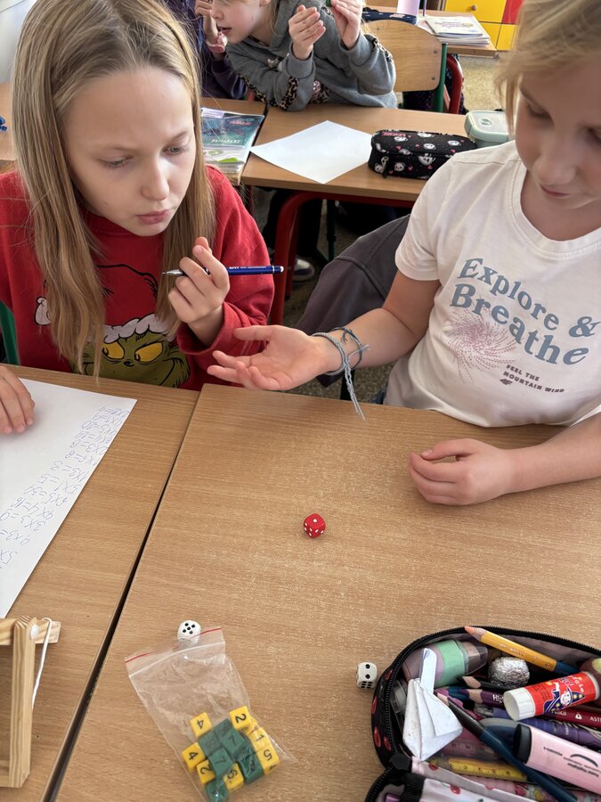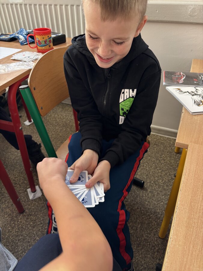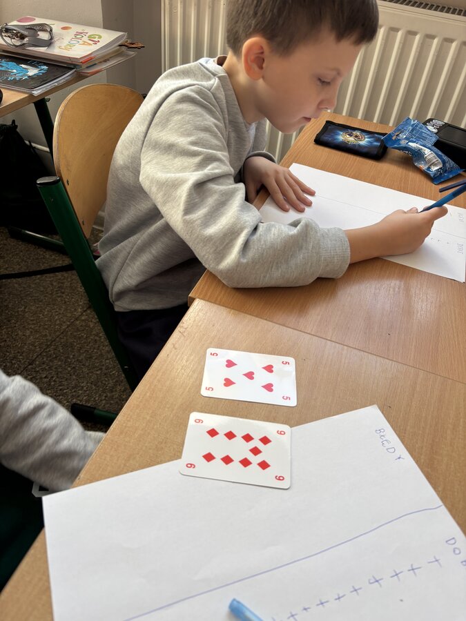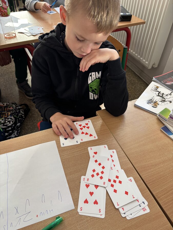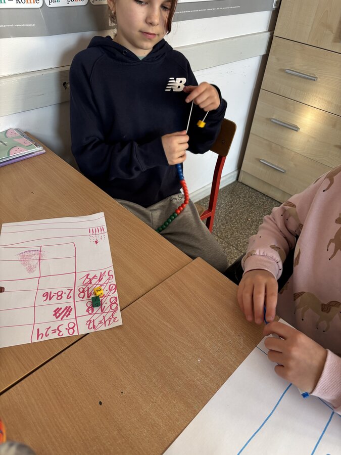 Tego dnia uczniowie klasy 3c w sposób szczególny udowodnili jak przez zabawę można uczyć się mnożenia. Grali w menory, kości na mnożenie , bingo, koło fortuny, karty.
