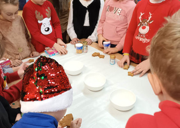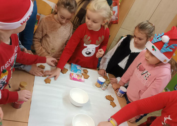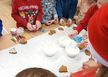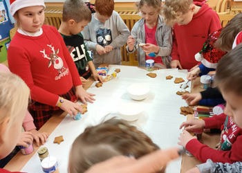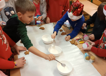 We wtorek klasa 1 b bawiła się w dekorowanie upieczonych przez panią Martynę Duszyńską pierniczków.