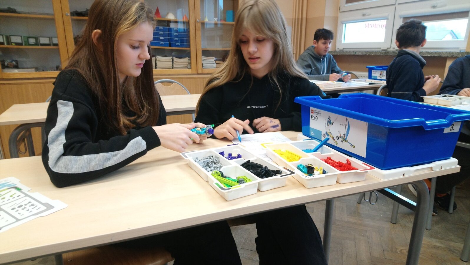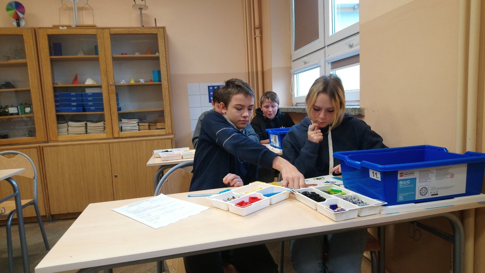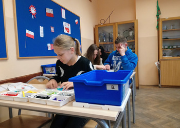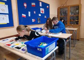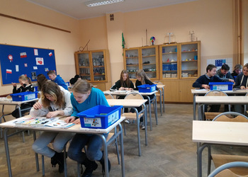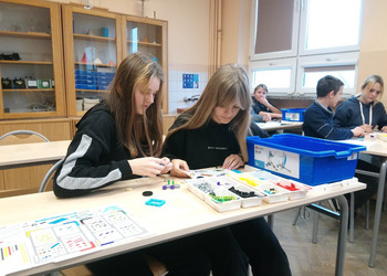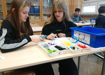 Zestawy klocków Lego education pozyskane przez naszą szkołę dzięki programowi #Labolatoria przyszłości posłużyły uczniom klasy 7a do zapoznania się z budową i działaniem przekładni kątowej. Zadaniem uczniów było zbudowanie przekładni, określenie kierunku i liczby obrotów poszczególnych kół przekładni. Na podstawie dokonanych pomiarów uczniowie wyliczyli przełożenie przekładni oraz sformułowali wnioski.