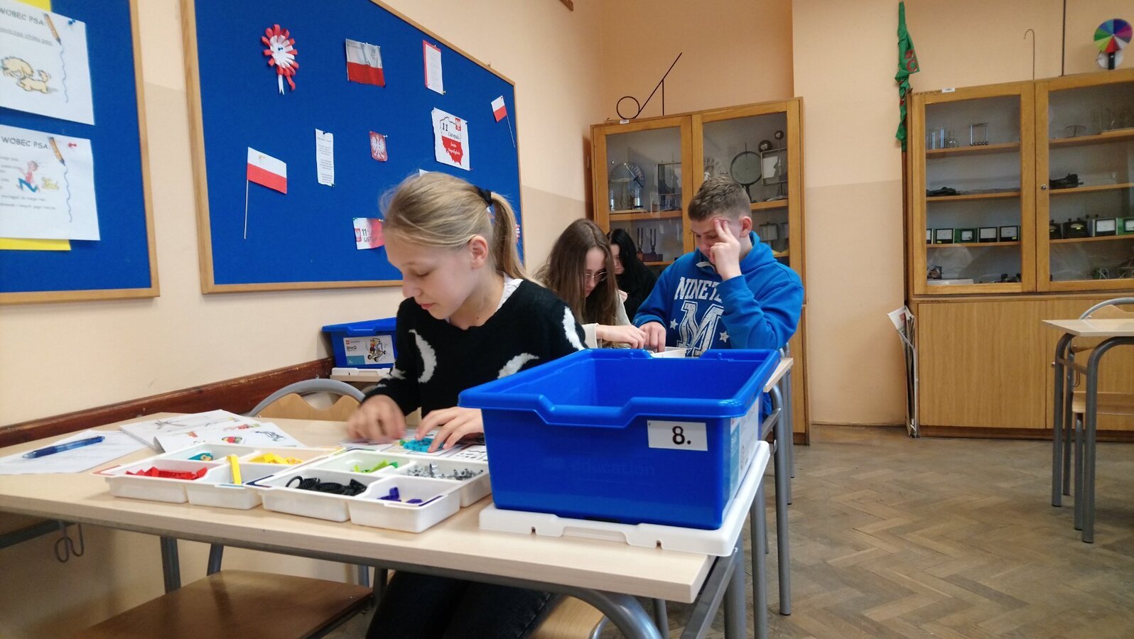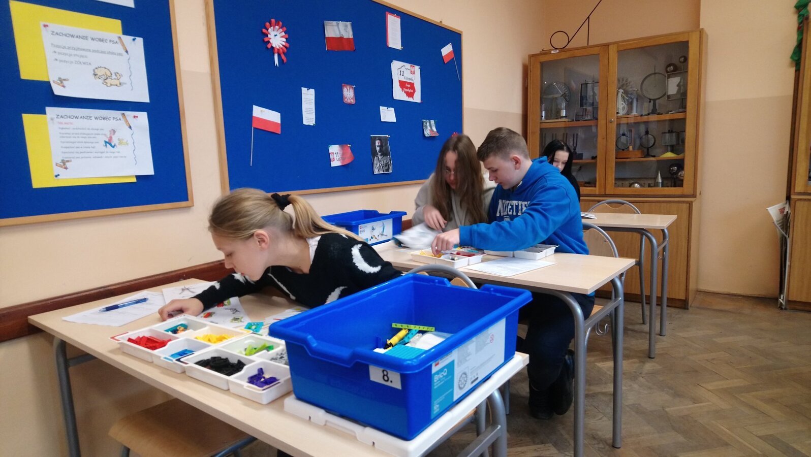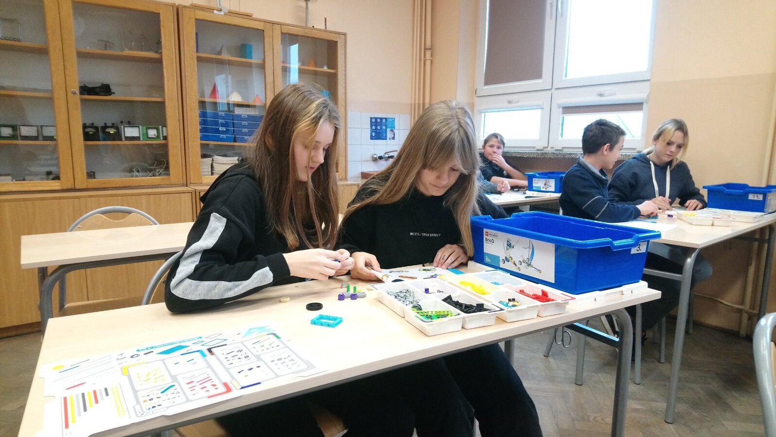 Zestawy klocków Lego education pozyskane przez naszą szkołę dzięki programowi #Labolatoria przyszłości posłużyły uczniom klasy 7a do zapoznania się z budową i działaniem przekładni kątowej. Zadaniem uczniów było zbudowanie przekładni, określenie kierunku i liczby obrotów poszczególnych kół przekładni. Na podstawie dokonanych pomiarów uczniowie wyliczyli przełożenie przekładni oraz sformułowali wnioski.