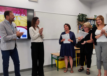 W dniu 24 czerwca 2025 roku w naszej szkole odbyło się uroczyste spotkanie w ramach upowszechniania rezultatów projektu realizowanego w ramach programu FERS. W wydarzeniu wzięli udział znamienici goście: Sekretarz Gminy Włoszakowice Pani Karolina Chlebowska, Prezes Zarządu Banku Spółdzielczego we Włoszakowicach Pani Dorota Grygiel, Prezes Stowarzyszenia Przyjaciół ZSO we Włoszakowicach Pani Dorota Antoszewska, Dyrektor Szkoły Pan Jarosław Zielonka oraz liczna społeczność szkolna.