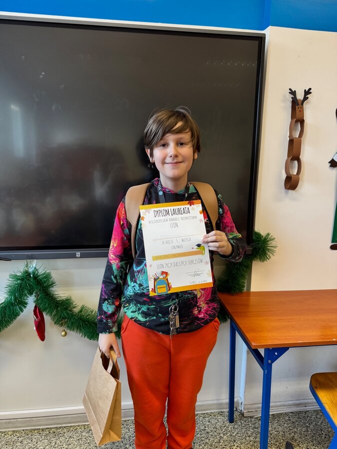* Natan Chorąży z klasy 4b, który zajął 10. miejsce
