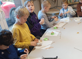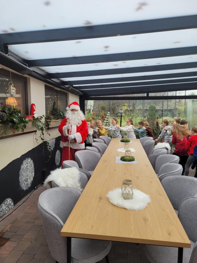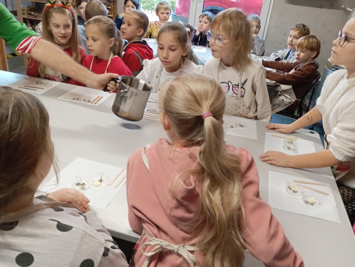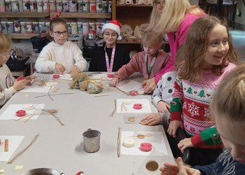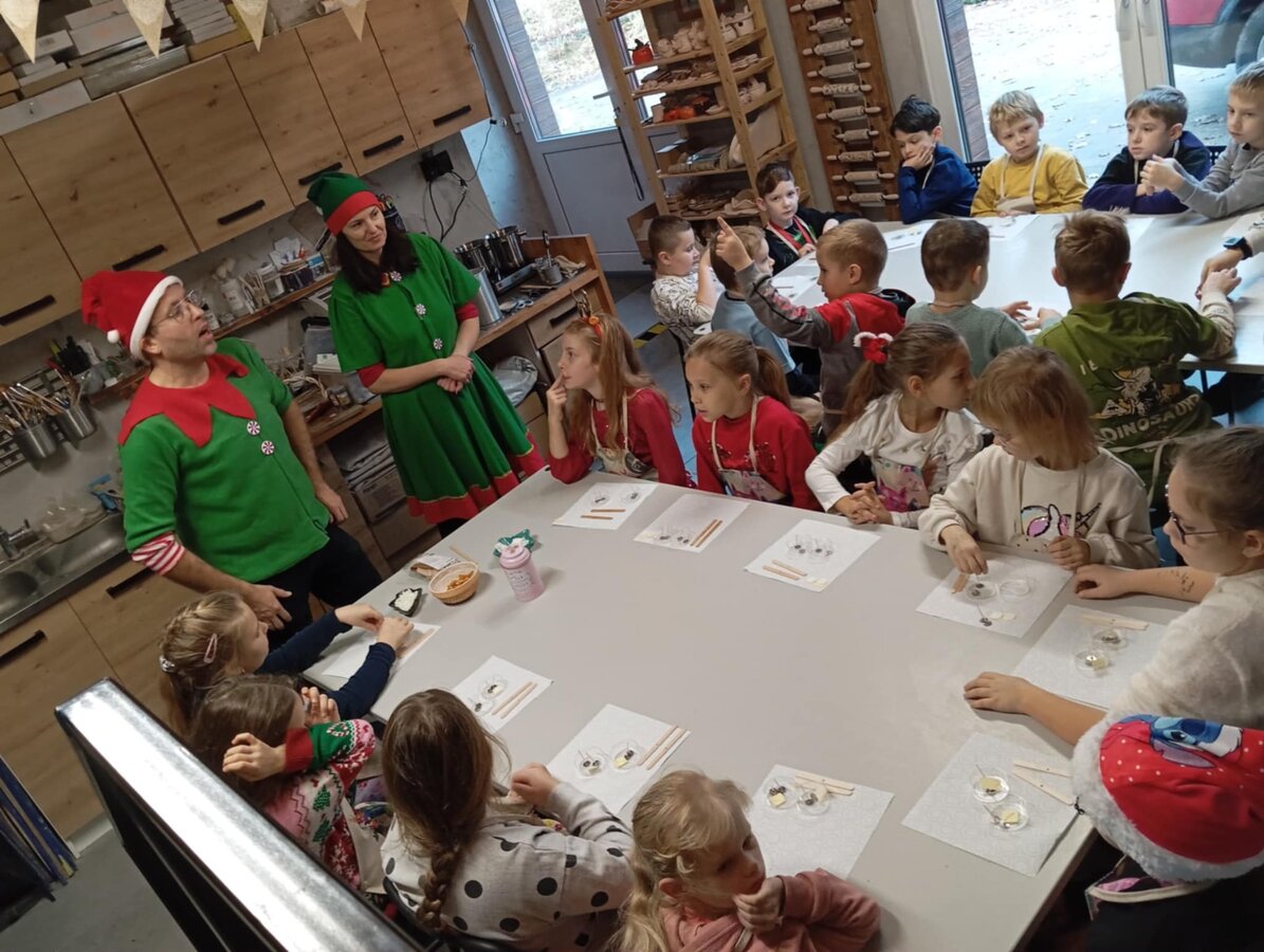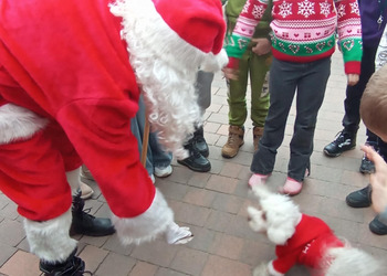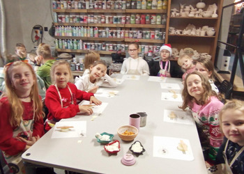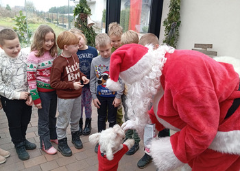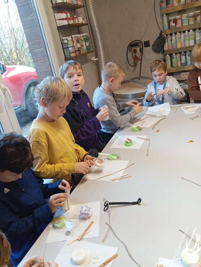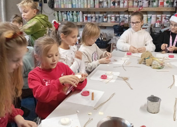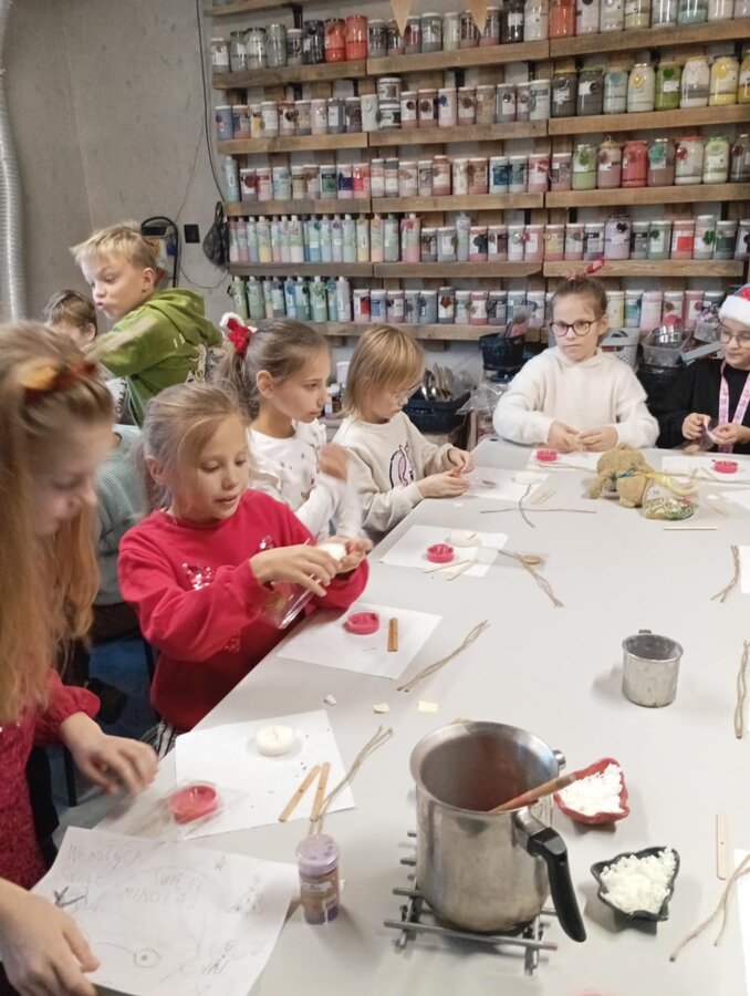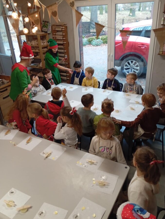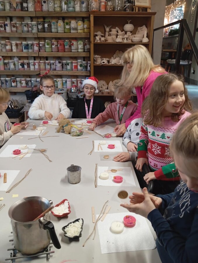 Klasa 2b udała się na warsztaty mikołajkowe do "Glinianego Zakątka". Najpierw dzieci uczestniczyły w zajęciach, na których wykonały samodzielnie sojowe, świąteczne świeczki.Następnie obejrzały pokaż Mikołaja i jego pieska. Na koniec przekazały swoje listy i zrobiły z Mikołajem pamiątkowe zdjęcie.