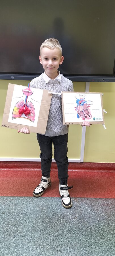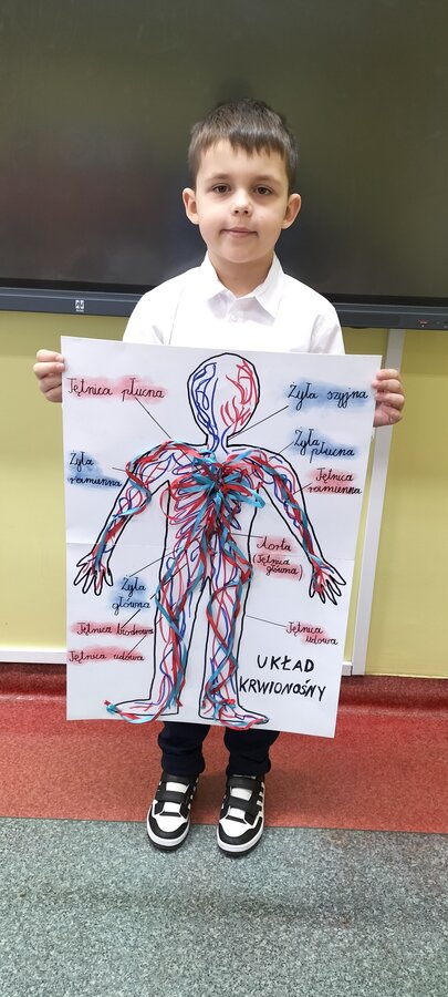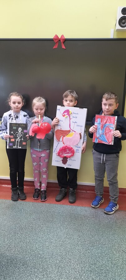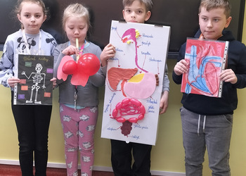 W trakcie lekcji uczniowie poznali również wybrane układy w ciele człowiek, a podsumowaniem zdobytej wiedzy było wykonanie przez uczniów prac plastycznych przedstawiających wybrane układy w ciele człowieka. Dzieci z dużym zaangażowaniem i kreatywnością przygotowały swoje projekty, dzięki którym mogły lepiej zrozumieć, jak funkcjonuje organizm człowieka.