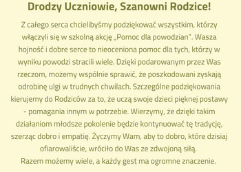 Podziękowania za zbiórkę dla powodzian