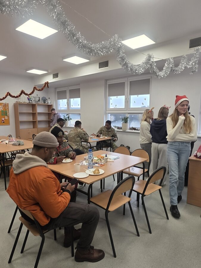 Świąteczna wizyta zaprzyjaźnionych żołnieży amerykańskich.