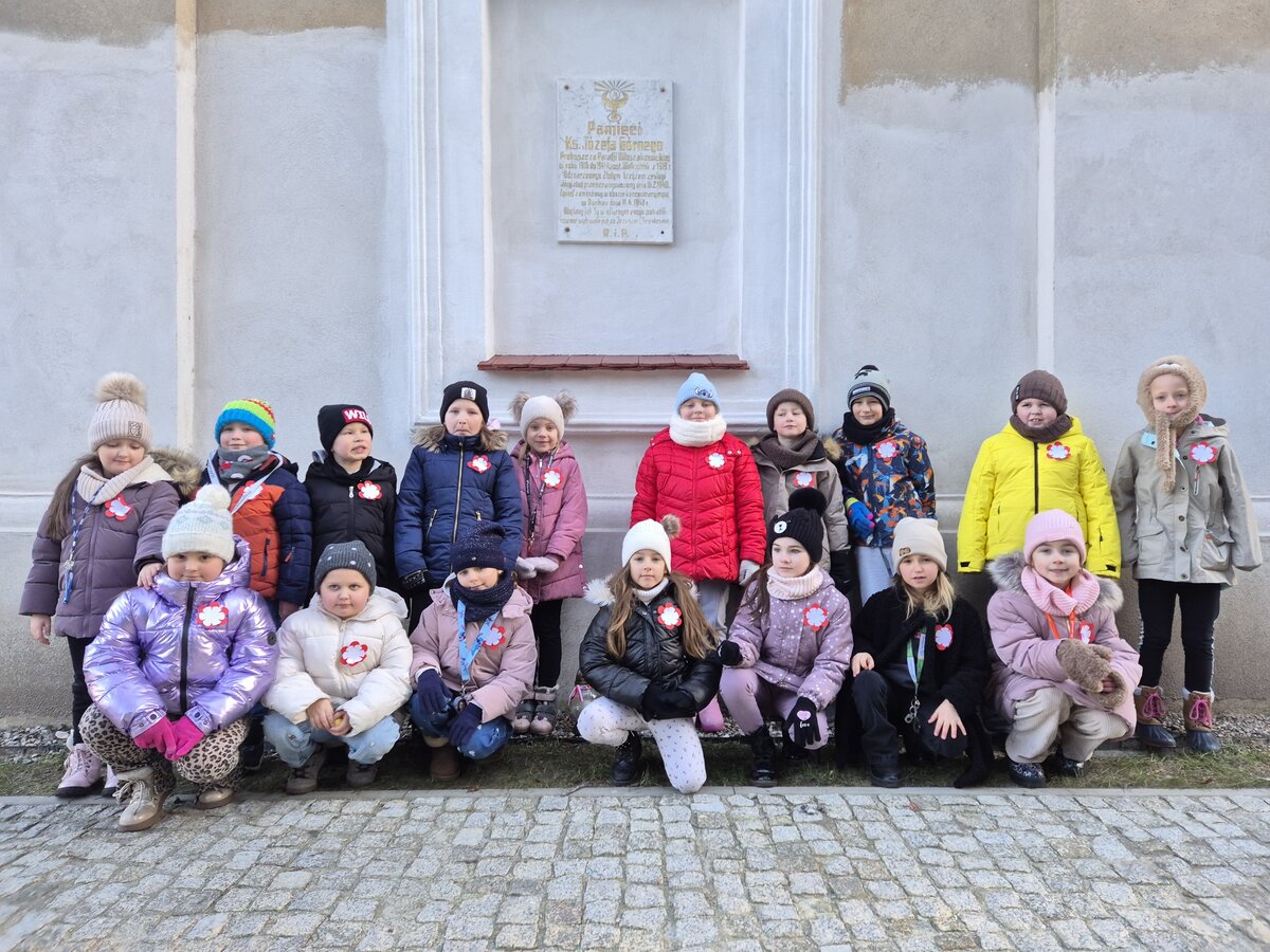 Uczniowie klas pierwszych uczcili pamięć uczestników Powstania Wielkopolskiego, składając znicze pod pamiątkową płytą. W ten sposób oddali hołd bohaterom, którzy walczyli o wolność naszej ojczyzny. Była to ważna lekcja historii, która pozwoliła młodemu pokoleniu lepiej zrozumieć znaczenie wydarzeń sprzed lat oraz okazać szacunek bohaterom narodowym.